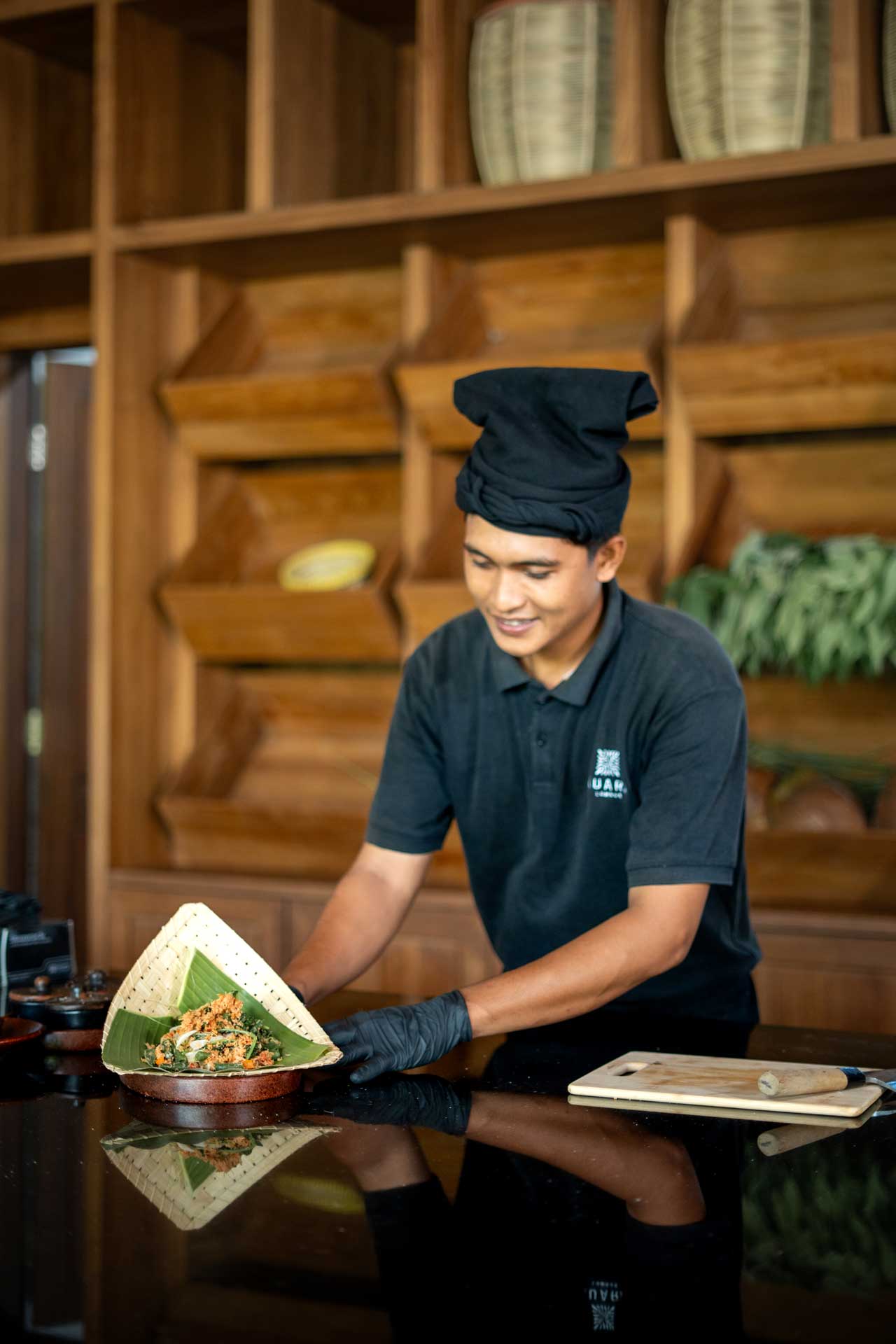 Along winding paths, guided by one of our chefs, you move between cassava, turmeric, leafy greens, and flowering trees — learning how most meals at Kuara truly begin: by touching the soil, smelling the leaves, and understanding what grows here.