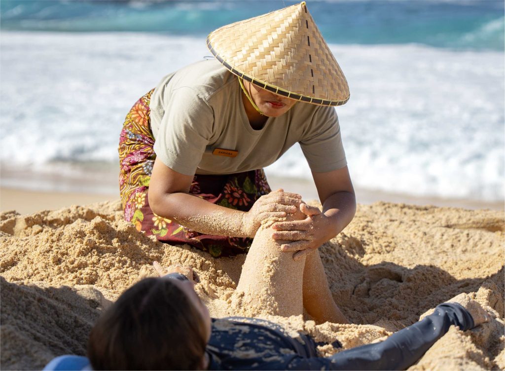 On a quiet stretch of beach, take part in an age-old healing ritual which draws from generations of island knowledge. Warm, coral-rich sand is gently pressed across the body, encouraging rest and release through natural reflex points. It's a method that comes from the land itself - passed through generations, remembered, and shared. Afterward, sip Songgaq, a warm herbal drink made from foraged forest roots, believed to restore balance from within.