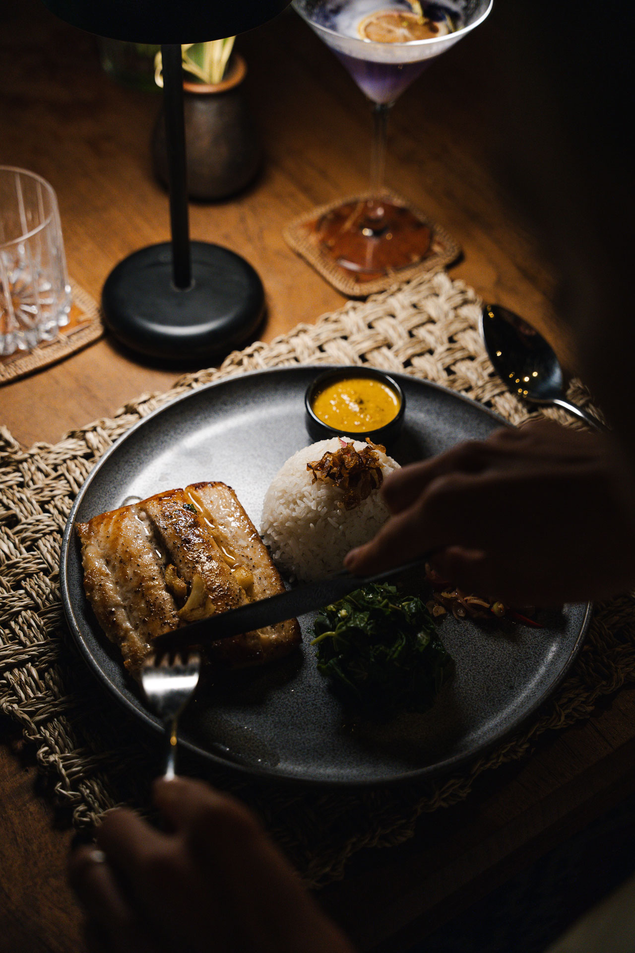 Meals are guided by presence, through thoughtfully composed plates, soft light, and the subtle sounds of jungle and ocean nearby — a place to linger, return, and share time around the table.